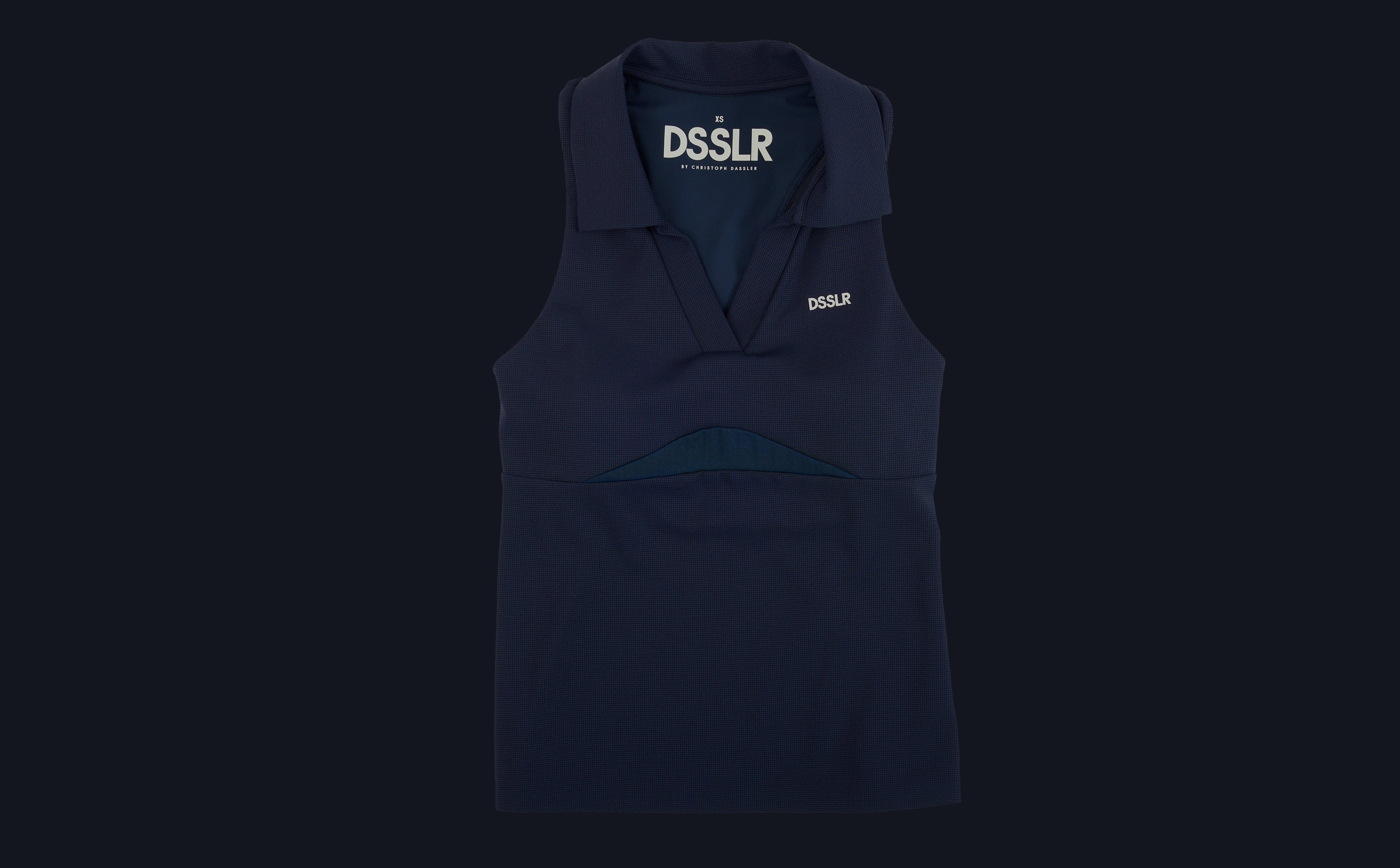 Gefertigt aus recyceltem Nylon mit edler Struktur, bietet es geschmeidigen Tragekomfort und technische Raffinesse. Der elegante Polokragen erinnert an klassische Tennis-Silhouetten, während Racerback und figurbetonter Schnitt maximale Bewegungsfreiheit schenken.